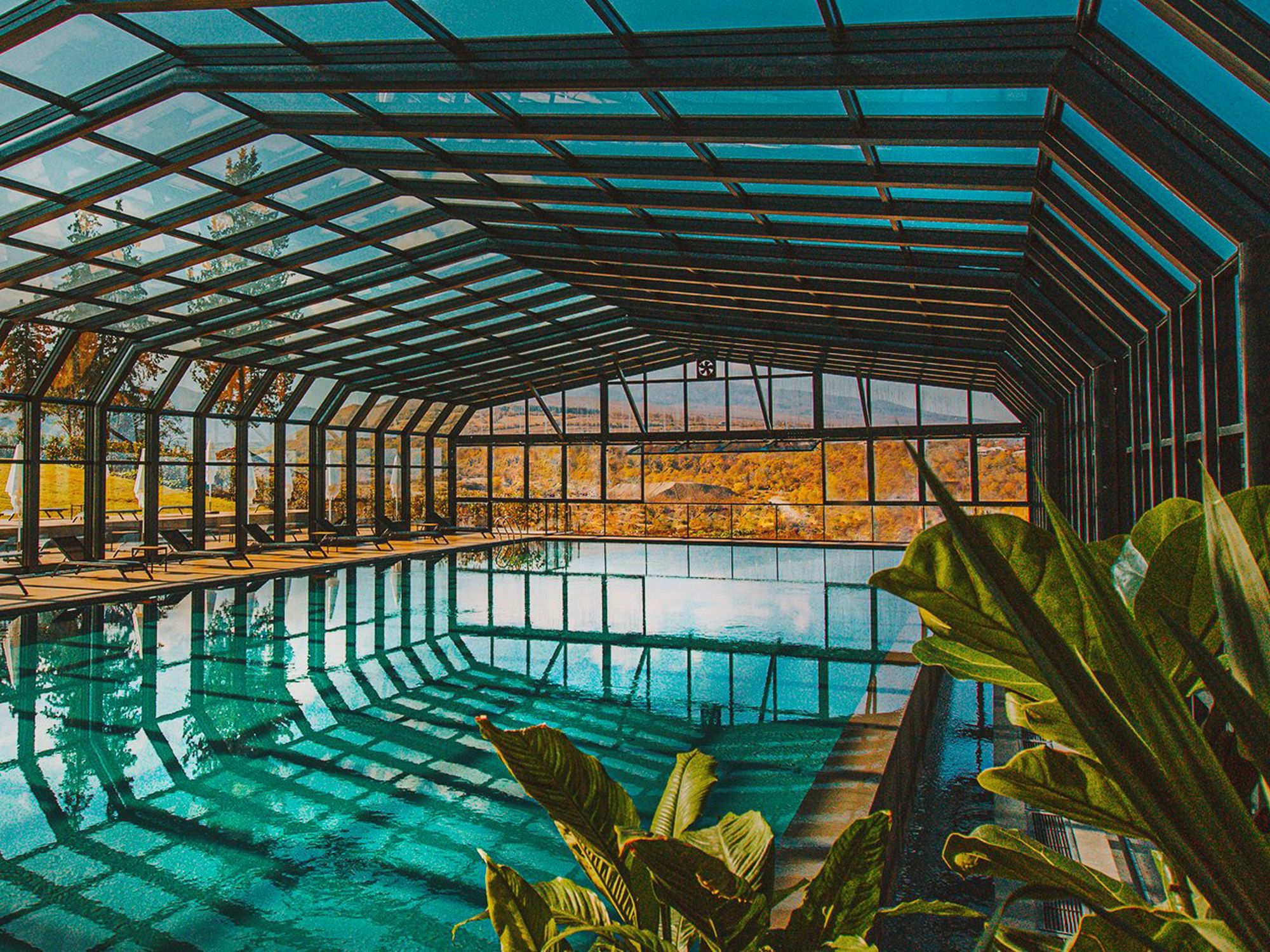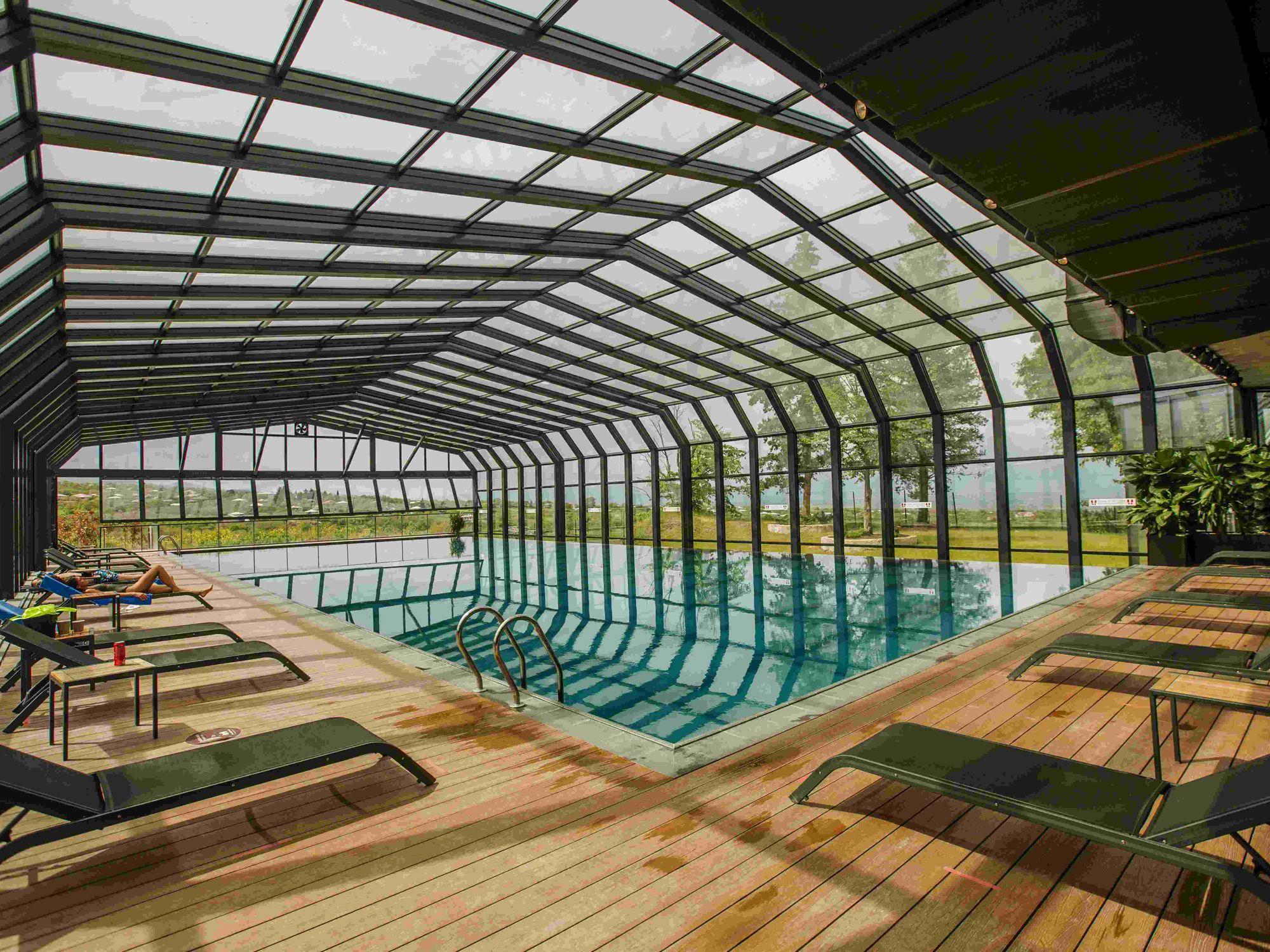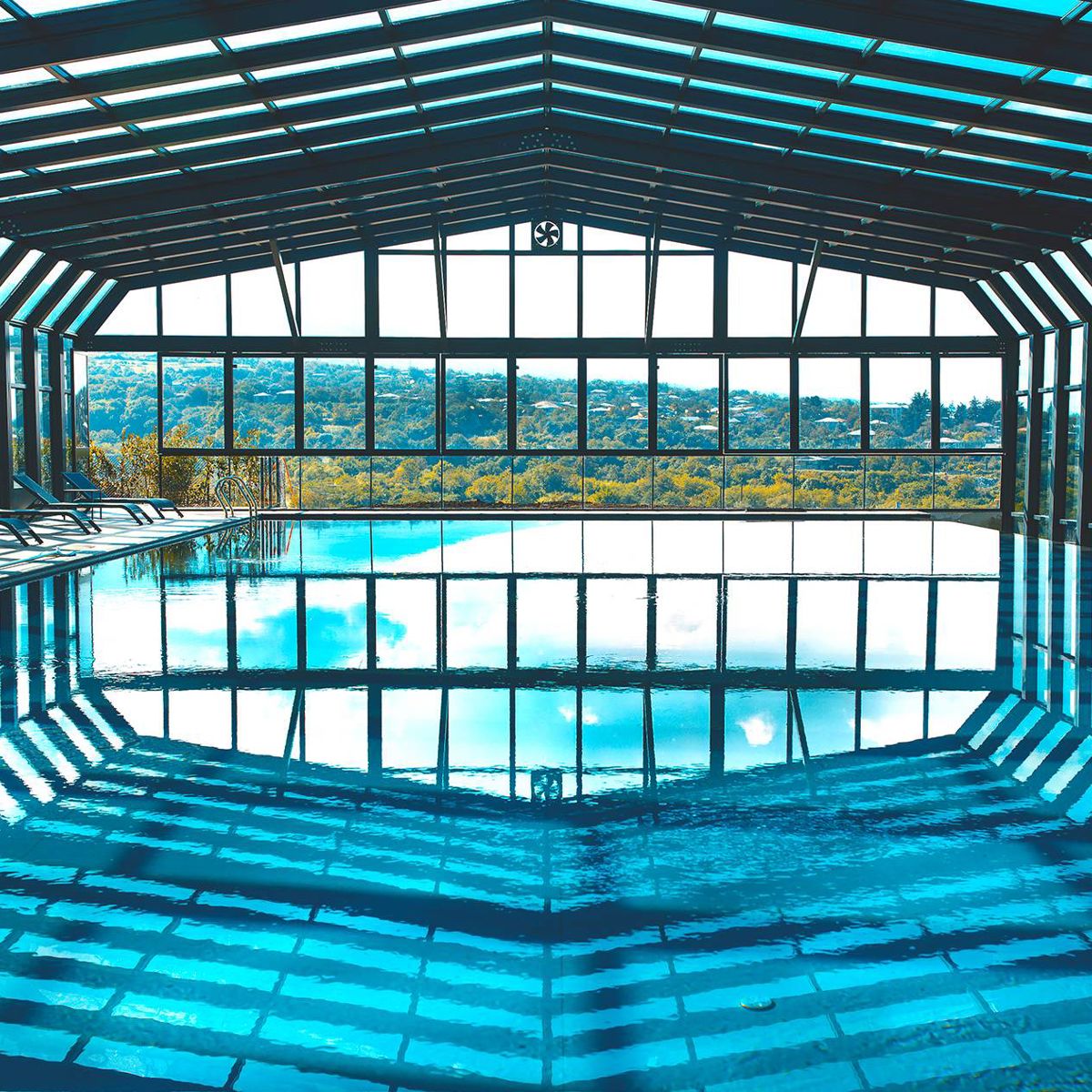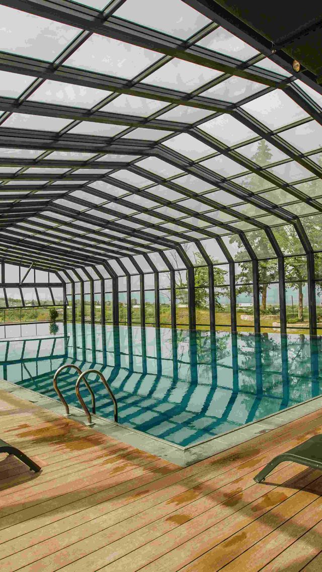 The second wellness facility on the property is the Infinity Pool & Leisure Club, which includes an indoor pool with retractable transparent walls and roof, a children's pool, and a terrace.