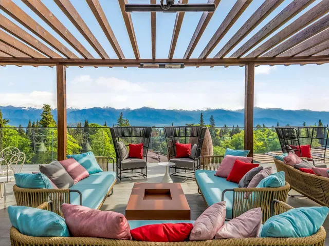 Designed by Spanish designers Christina Gabas and Damian Figueras, our 124 rooms and suites are inspired by the seasons, lending the rooms a sophisticated yet very cozy feel. Soothing colors and natural materials give way to views of the Caucasus Mountains, the vineyards, and the forest.
